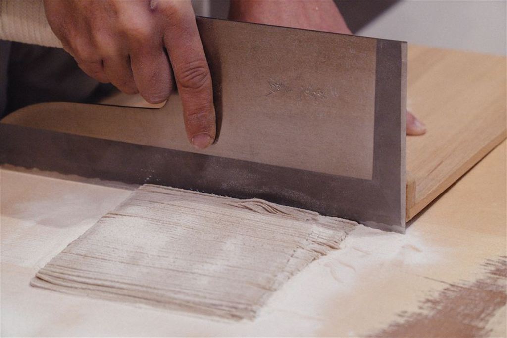 そば玉づくりから、麺棒でのばし、包丁で細切りにする工程まで、プロがしっかりサポート。