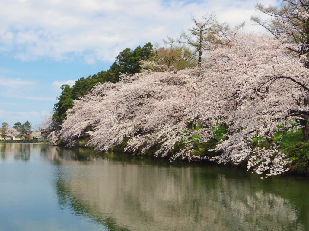 長い冬が明けると、高田城址公園には約4,000本の桜が咲き誇り、毎年「観桜会」が開催されます。三重櫓と桜が約3,000個のぼんぼりに照らされ、お堀に映り込む光景は幻想的で、「日本三大夜桜」のひとつとして広く知られています。春の三重櫓から眺める桜景色は、まるで殿様になったような贅沢な気分を味わえる特別なひとときです。